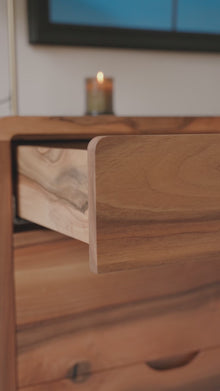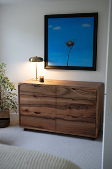 Die Ami Walnuss Kommode ist ein handgefertigtes, elegantes Stück aus massivem Walnussholz. Sie bietet ein zeitloses Design mit reichlich Stauraum. Das Sideboard zeigt die natürliche Schönheit der Holzmaserung und ist mit erstklassiger Handwerkskunst gebaut, um lange zu halten. In der Größe anpassbar, ist es ideal für Wohn- oder Essbereiche und fügt Funktionalität und ästhetischen Reiz hinzu.
