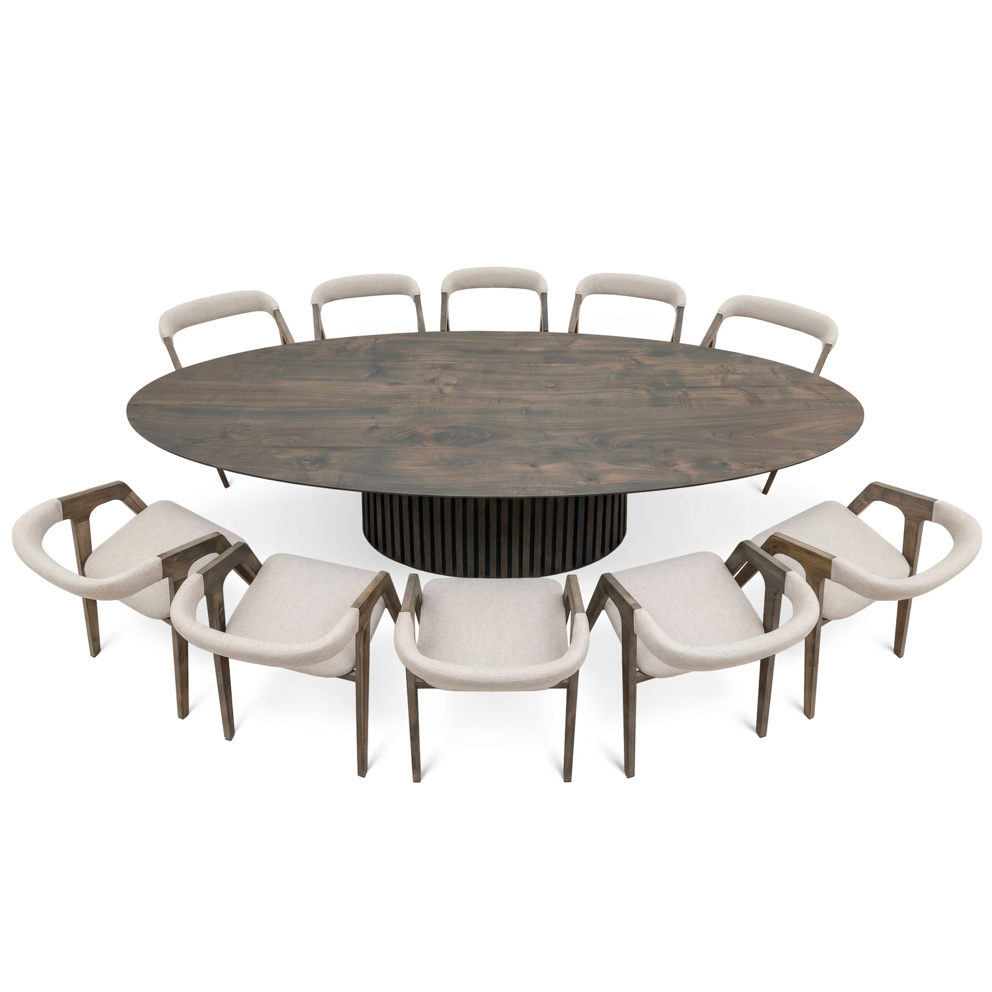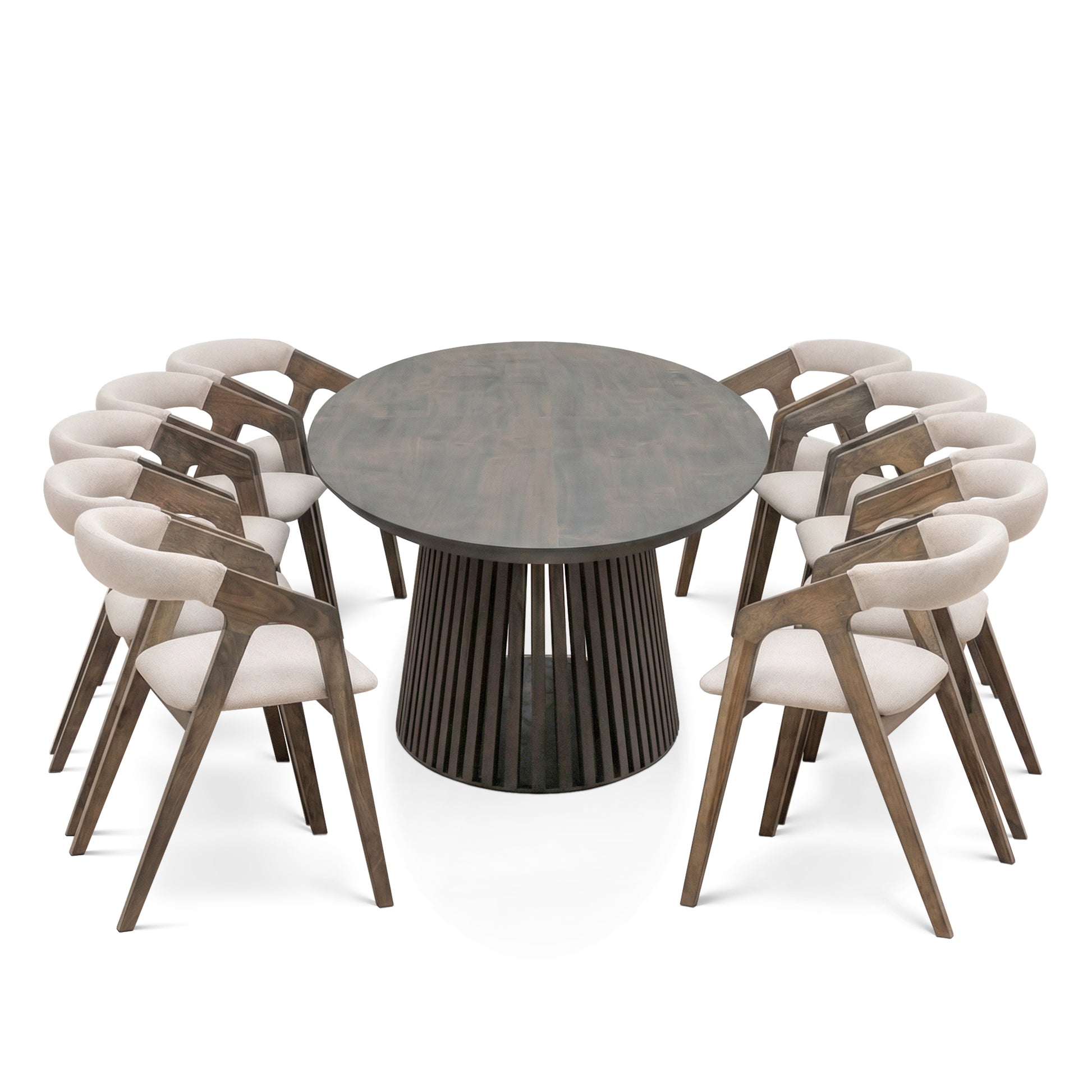 Wir bieten maßgeschneiderte Größen für unseren runden Eichen-Esstisch an, die perfekt in Ihren Raum passen. Senden Sie uns eine E-Mail an contact@s10home.com mit Ihren Anforderungen.