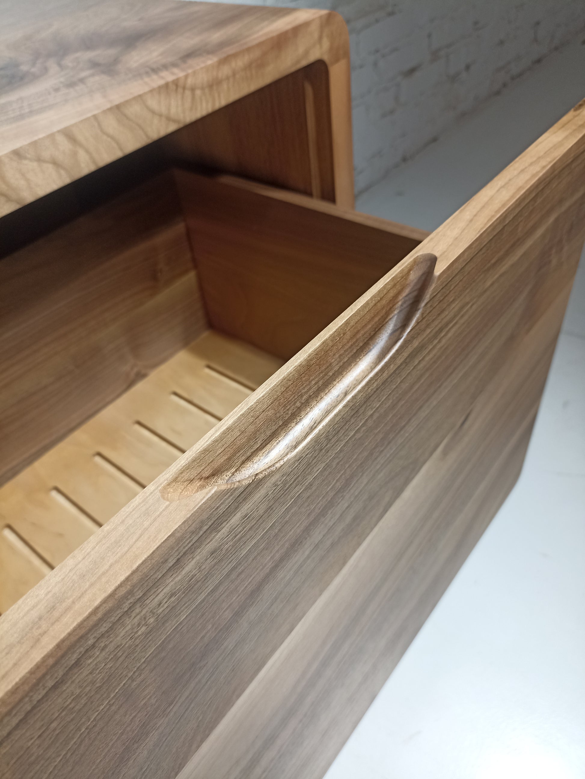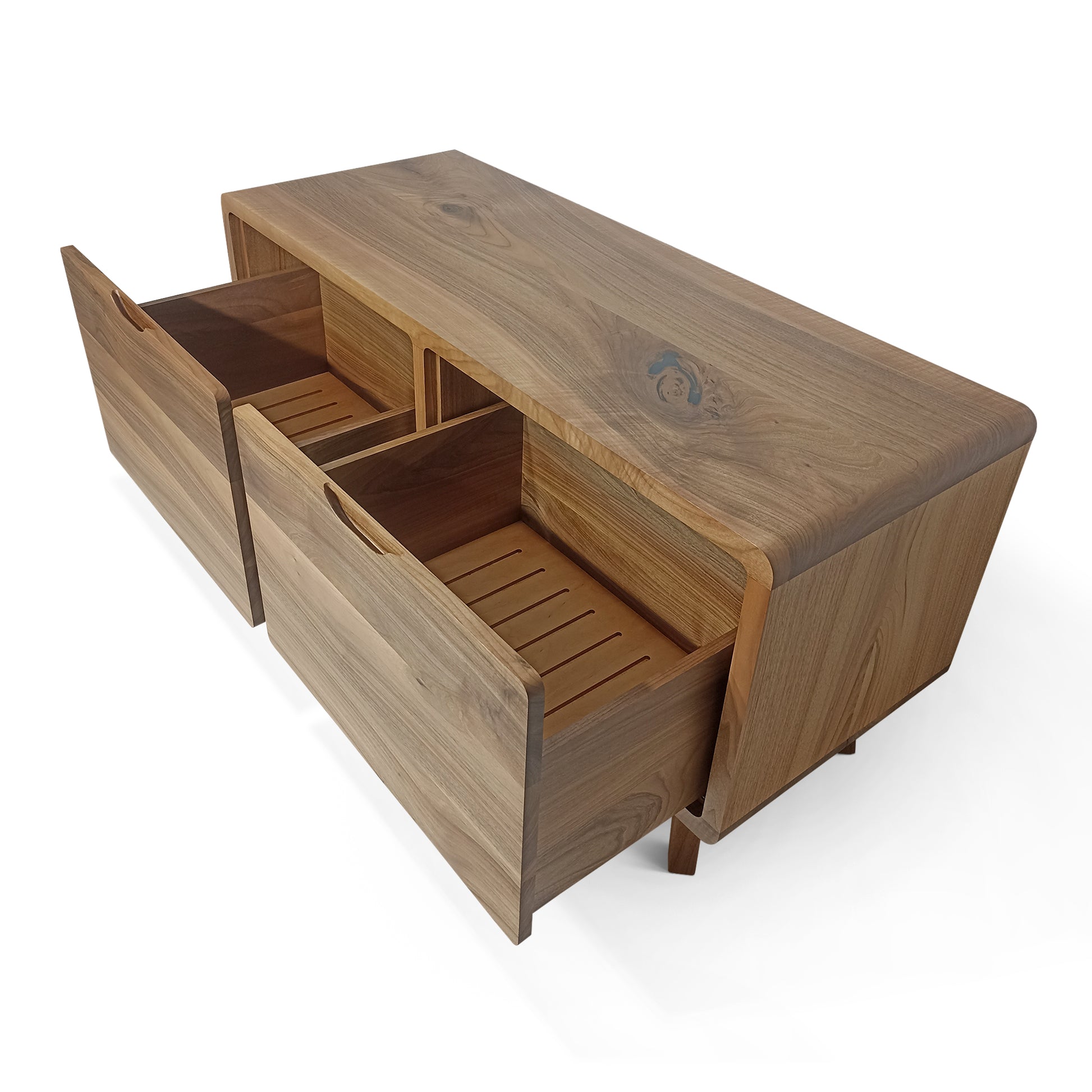 Das Walnuss-Sideboard ist ein elegantes und stilvolles Möbelstück. Es verfügt über ein reichhaltiges, warmes Osmo-Öl-Finish, das die natürliche Holzmaserung hervorhebt. Größen können kostenlos angepasst werden, um Ihren spezifischen Bedürfnissen gerecht zu werden.