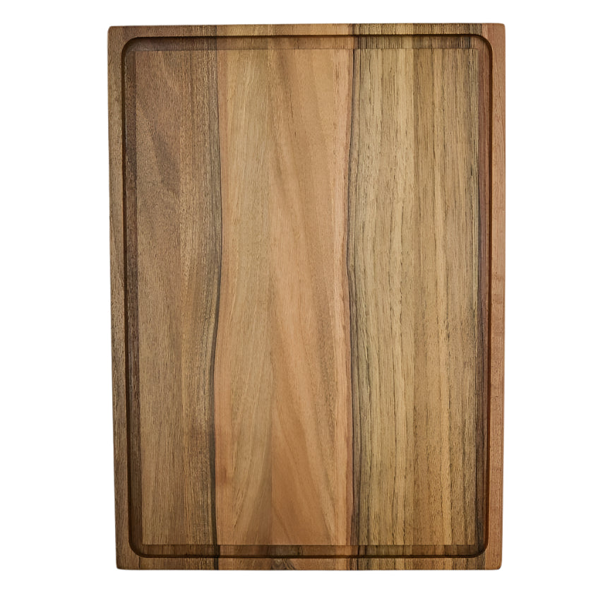 Our wooden chopping board is crafted from a sturdy oak or walnut with a divot edge to collect juices and crumbs as you cut, or flip the board over to serve cheese, charcuterie or appetizers. Modern yet timeless, our edge-grain cutting board can be used as carving blocks offering versatility, classic good looks and a natural durability that stands up easily to everyday use.