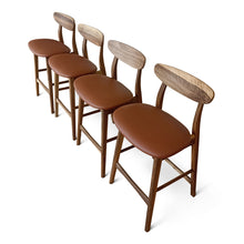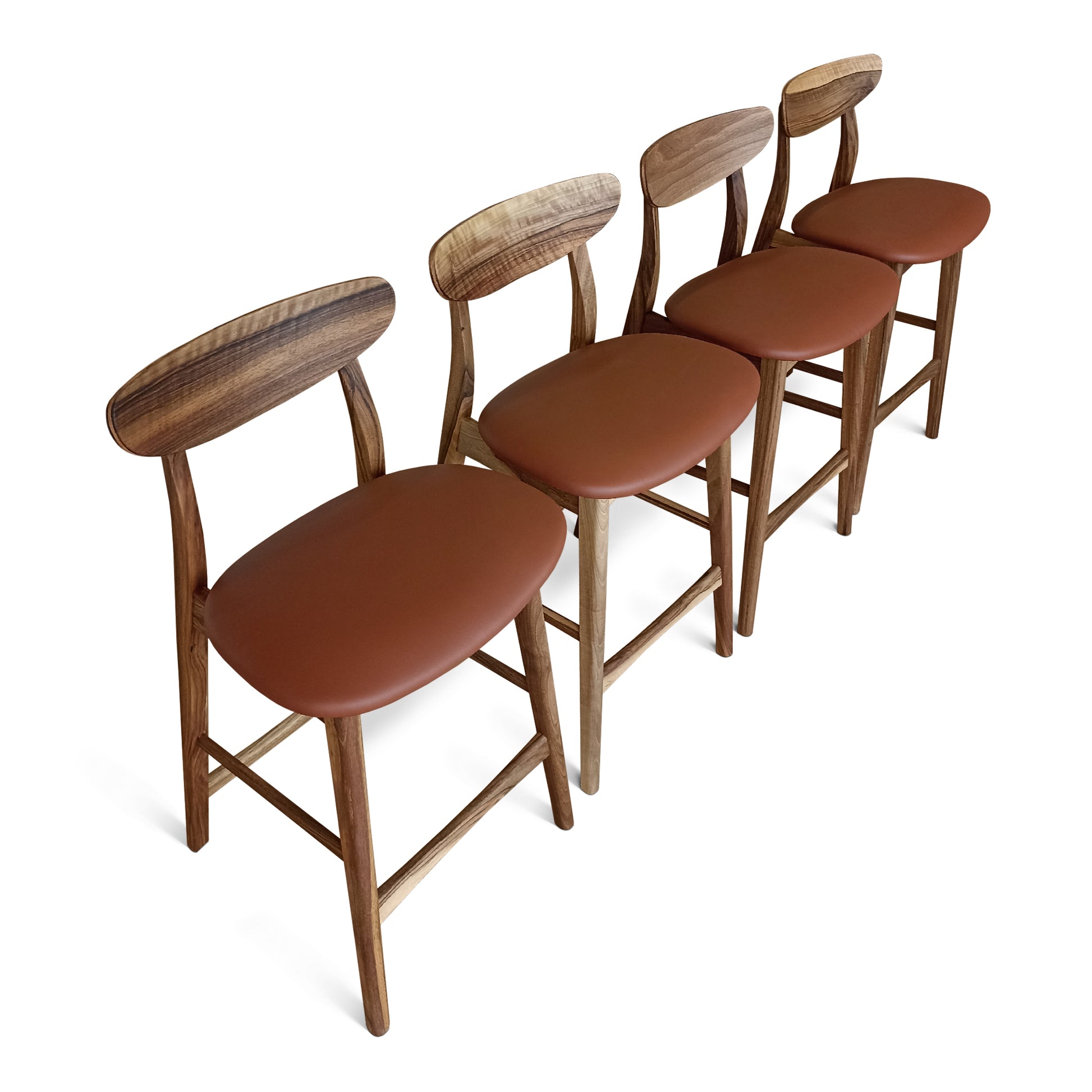 Handcrafted from natural walnut, this elegant stool features a seat upholstered in cognac leather for a timeless look. The frame is finished with Rubio Monocoat two-component wood oil for lasting durability and wear resistance. A 30 mm foam lining ensures excellent sitting comfort. Seat height: 86 cm. Currently 4 in stock.