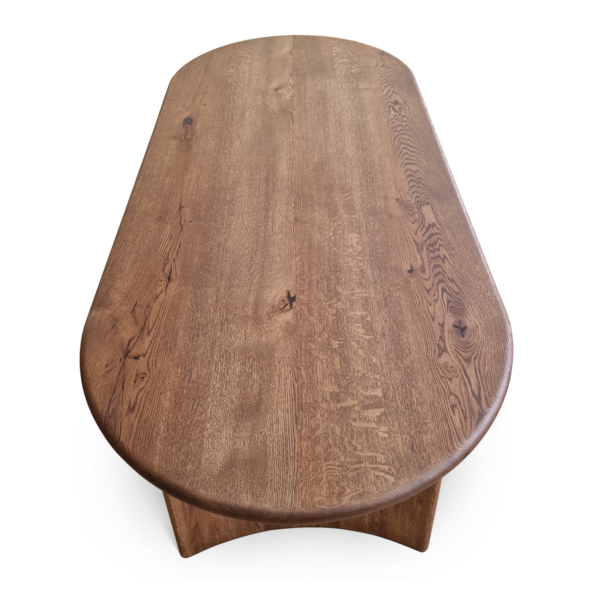Jeder Tisch ist aus Kernholz, dem stärksten Teil des Baumes, gefertigt und verfügt über massive 4 cm dicke Bohlen, die die Schönheit und Widerstandsfähigkeit der Natur unterstreichen.