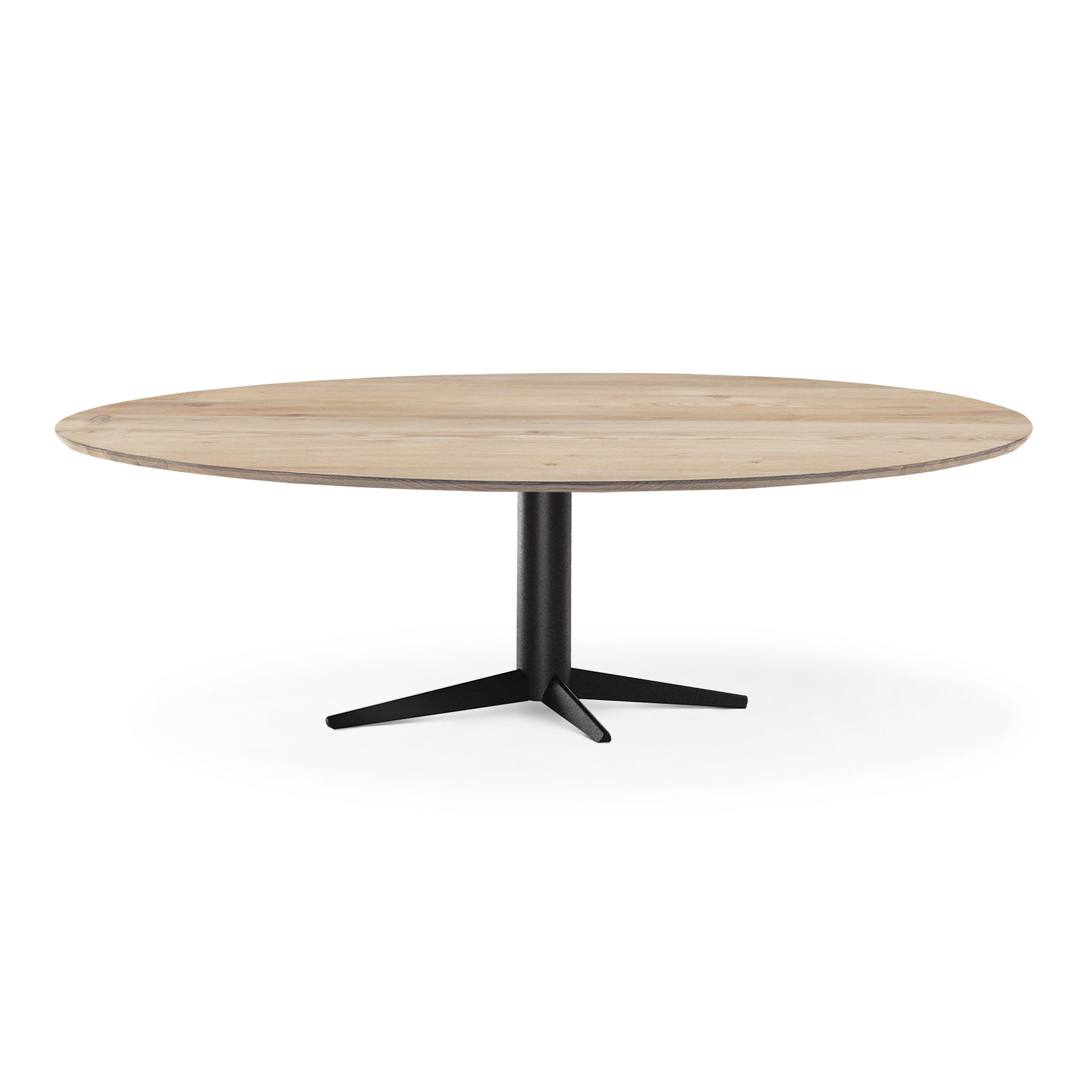 The Pedestal Oval Oak Table seamlessly blends sculptural elegance with practical functionality. Crafted from solid oak, its distinctive interlocking legs create a perfect balance of stability and style, customisable to the nearest cm in sizes from Ø100 to 280 cm.