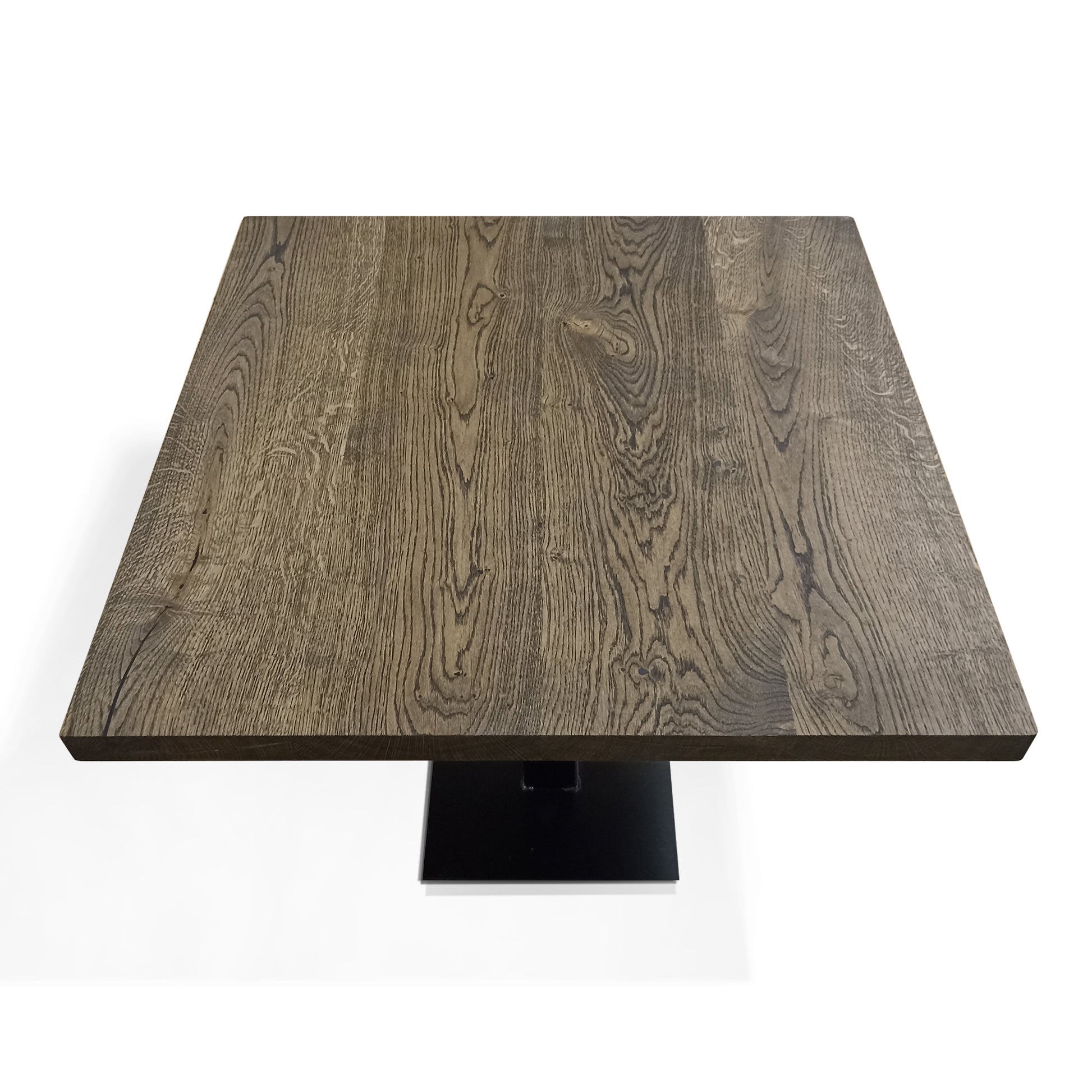 The Pedestal Bistro Table in charcoal oak combines elegance and functionality with its ultra-durable Thermo oak top and a sturdy pedestal base for a sleek, space-saving design. Standing at 75 cm high, it features a 60x60 cm tabletop made of 4 cm-thick planks of solid wood, finished with Osmo oil for enhanced durability and a refined, natural look. Perfect for cafés, restaurants, or cosy dining spaces.