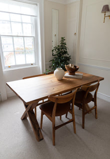 Handcrafted from solid wood, the Eva Dining Table in Natural Walnut, size 160 × 80 cm with straight edges, is suitable for 6 seater