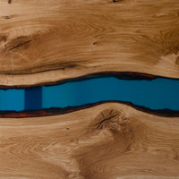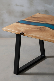 Succumb to the charm of our Wabi River table, with a trapeze base. The combination of elm and coloured resin makes it a true work of art. This exceptional table will fit into any interior, whether in your dining room or the heart of your restaurant.