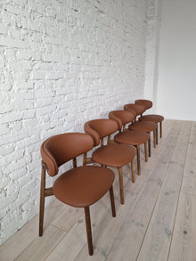 Dimensions globales Chaise de salle à manger en cuir en noyer: 80 cm (h) x 58 cm (w) x 47 cm (d)