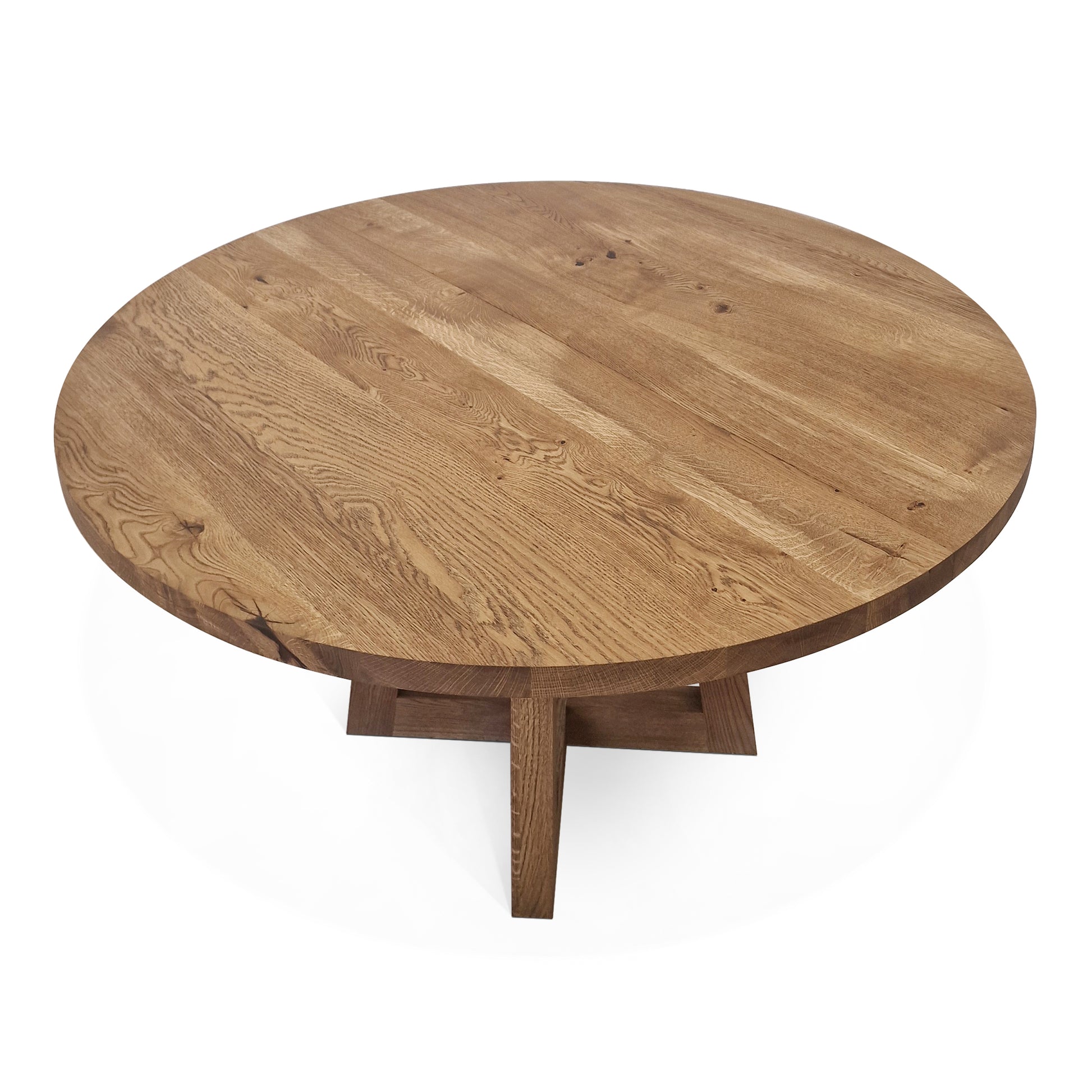Présentation de notre table à manger ronde en chêne faite à la main - un ajout magnifique à toute maison. Fabriquée en bois massif, cette table allie élégance et fonctionnalité. Sa fonction extensible vous permet d'ajuster facilement la taille pour accueillir des invités supplémentaires, ce qui la rend parfaite pour organiser des dîners et des occasions spéciales.