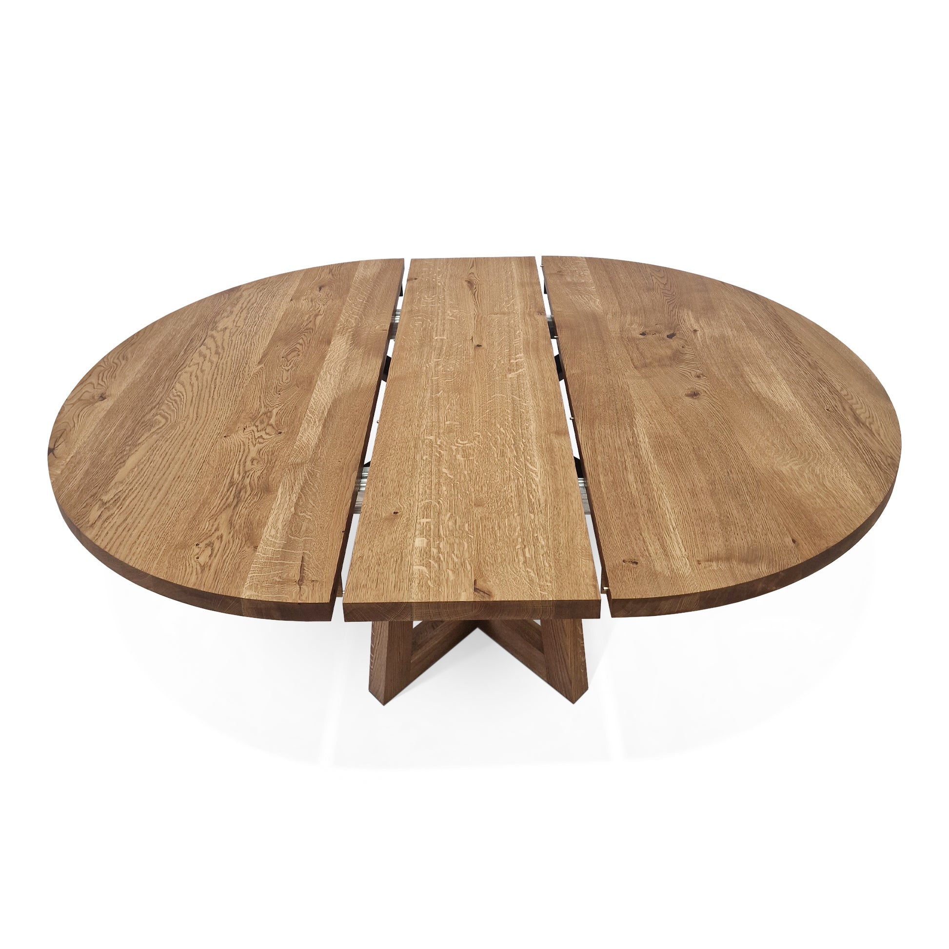 Tous nos panneaux d'extension sont fabriqués en planches massives et proviennent du même arbre que la table principale. Rallonge table prolongée a un beau grain ininterrompu.